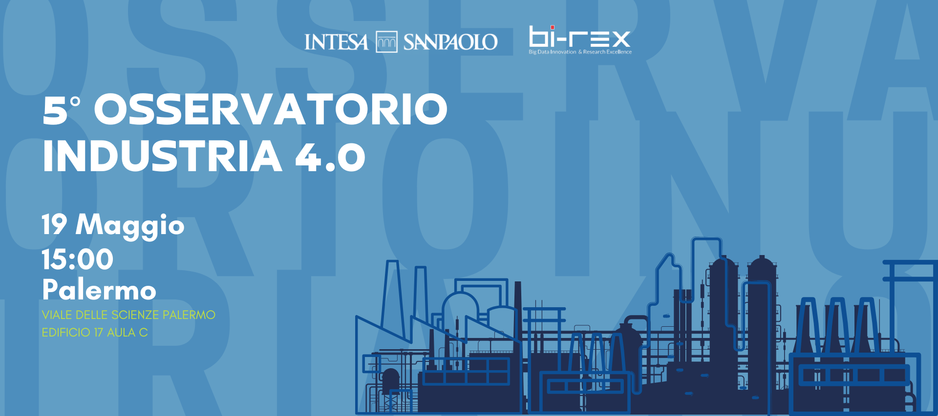 Torna per la quinta edizione l’evento di presentazione dei risultati dell’Osservatorio Industria 4.0, iniziativa realizzata da BI-REX in collaborazione con Intesa Sanpaolo, presso la sede di BI-REX Palermo.